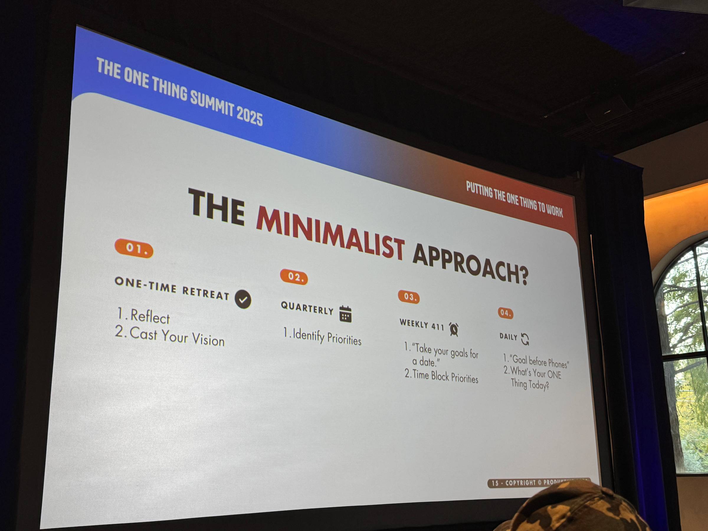 Hello Friends: I've recently returned from another cathartic experience, this time closer to home in downtown Austin. There are so many things I'd love to share with you here and in person, as you wind down 2025 and take advantage of the current retrogrades. Retrogrades are ideal times for reflection, reconsidering, resting, and restarting. Mercury stationed retrograde in Sagittarius on Sunday, while Jupiter, the expansive, beneficial planet of faith and justice, is stationing retrograde tomorrow, November 11th at 7:41 a.m. CT in its exalted sign of feeling Cancer. When Uranus (energy, static, surprise) re-entered Taurus on November 7th, I wondered what the disruptor would be in the sign of the body, resources, beauty, and all other earthly concerns. So on Saturday after the conference that I'm describing below, I had an unexpected visit to the ER, because of left-side tingling and numbness. No worries, I'm totally fine, but it was a wake-up call to take better care of myself, particularly my diet and exercise. Goodbye caffeine and sugar :( The other breakthrough moment came in the form of a summit. You may know Sam Vander Wielen, if you own an online business. She has created an $8M business from selling only 1 product: The Ultimate Bundle, which are legal templates and down-to-earth education on how and when to use them. Sam published her book this year, When I Start My Business, I'll Be Happy, and has been touring it through speaking at major events like Kit's Craft + Commerce Conference. She's humble, plain spoken, astoundingly smart, and incredibly resilient. She built her company despite managing her own brain surgery, caring for her terminally ill father for nearly 4 years, and then the death of her mother shortly after her father's passing last year. She models integrity, humor in the hard parts, authenticity, and generosity, and I'm grateful to know her. Well, Sam invited me to Jay Pappasan's inaugural "The One Thing Summit," this weekend, where she was the final keynote. The One Thing is named after his book with Gary Keller (founder and CEO of Keller Williams) of the same name, and included some really wonderful speakers. Besides, Sam, I really benefitted from the keynote given by educational behaviorist, best-selling author, and award-winning scholar, Dr. Robyne Hanley-Dafoe. She spoke about burnout, resiliency, and hope in such an entertaining yet educational way. Dr. Robyne is the gold standard in delivering an hour-long talk that hits you hard. Here is my Otter recording and transcript of her talk, which I highly recommend spending time with when you're folding laundry or hiking. You won't be the same. Here are the other recordings of some of the talks if you're interested in public speaking, AI leadership, or building habits. -Sam's One Thing -The Anatomy of Habits: Microbehaviors to Extraordinary Results -The CRIT Framework for Strategic Thinking by Geoff Wood (AI Leadership) -Overcoming Speaker Anxiety with Tristan de Montebello News You Can UseOk, here are some of the biggest takeaways I'd love to share with you. Here's The One Thing Approach: 1) Cast a Vision: Identify your core values and define the vision for your future by setting Someday, 5-year, and 1-year goals 2) Identify Priorities: Zero in on the activities and habits that drive the outcomes you seek, 80/20 rule! 3) Create a Plan: Turn your annual goals into one-page plans and build a "411" to break down goals into quarterly, monthly, and weekly targets. 4) Take Action: Time block your priorities, protect your time blocks, and do your most important work. 5) Evaluate: Review results, spot trends, get perspective, and adjust strategy and vision Face what failure looks like: Failure to Cast a Vision, Go Small, Protect Time, Live the Pareto Principle, and Build Routines. These are proprietary to The One Thing methodology, which you can read about in the book. If you do only a few things, here is the minimalist approach: One-Time Retreat: 1. Reflect 2. Cast Your Vision Quarterly: 1. Identify Priorities Weekly 411: 1. Take Your Goals For a Date, 2. Time Block Priorities Daily: 1. Goals Before Phones, 2. What's your ONE Thing Today? Some of you who read this newsletter are already coaches, so this might already be a part of your repertoire, but it is such a helpful reminder. Wisdom to PonderThese past few months, I have been diving even deeper into my own spiritual practices, particularly going deeper into Vedanta teachings and the Chakra system in yoga, which I have been leading on Sunday evenings at The Yoga Common. Something I've been contemplating is: The Law of Identification. Unlike the Law of Attraction and Manifesting, this law says that you attract what you identify with. It's a more efficient way to get what you want. Some questions we might ask are: "Do I live in a benevolent or malevolent world?" "Do I have an abundance mindset or lack mentality?" What other questions give you clues about what you identify with? It's easier to see in your friends and loved ones what they identify with as the "symptoms" that keep showing up. Almost chronic and predictable. Health issues, money worries, difficult relationships, unsatisfying work, few clients, you get it. In these teachings, it's not enough to say, "I'm going to stop smoking." It's more likely to happen if you believe "I'm not a smoker." You will do the things a non-smoker does, live as a smoke-free person. Otherwise, you will likely keep doing the thing you're saying you're not going to do because the attention is on that thing you're struggling with, and you identify with it. Take It Off the MatFrom December 5-7, 2025, I'm renting a house in Wimberley and taking some time out to work on my own vision and strategy for 2026. If you'd like to join me, there are 5 other beds in this picturesque property. So, for 5 doers (or 6 if you're willing to bring a partner to share a bed) also in need of head space, heart space, and sacred guidance, I'm inviting you to