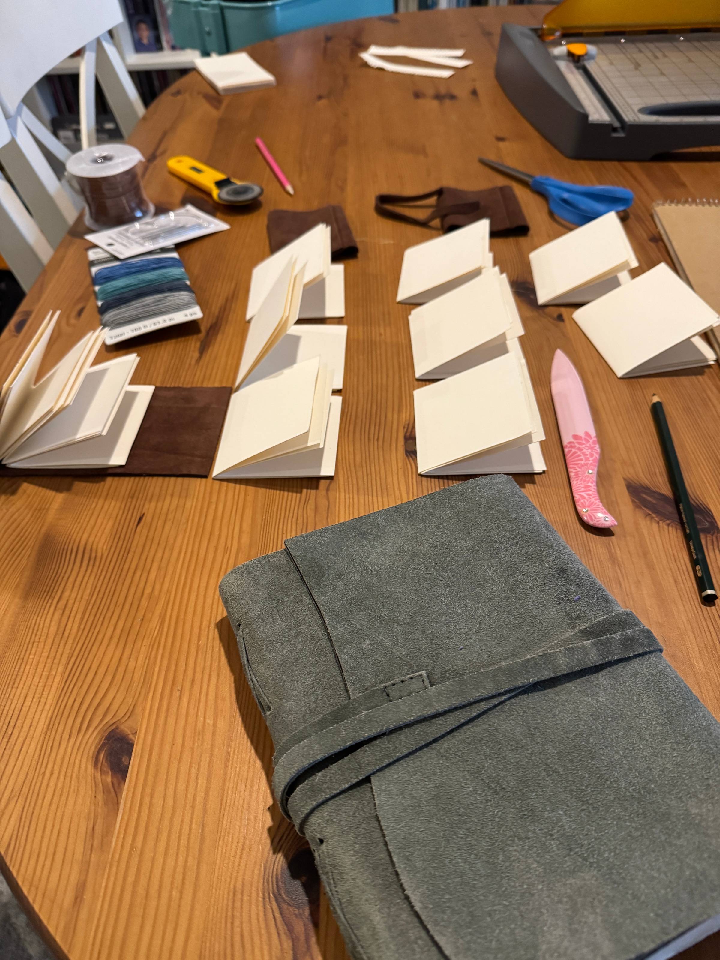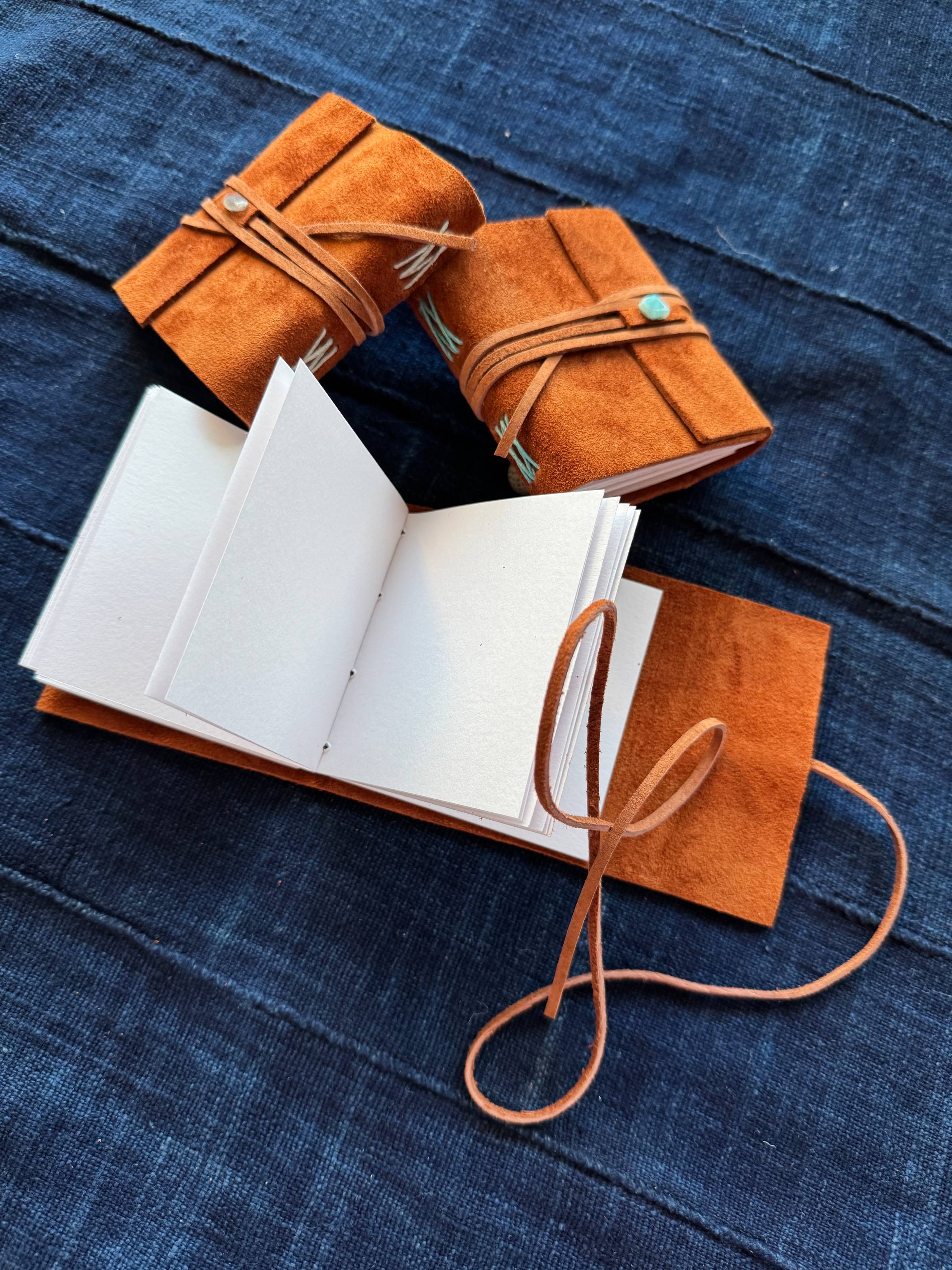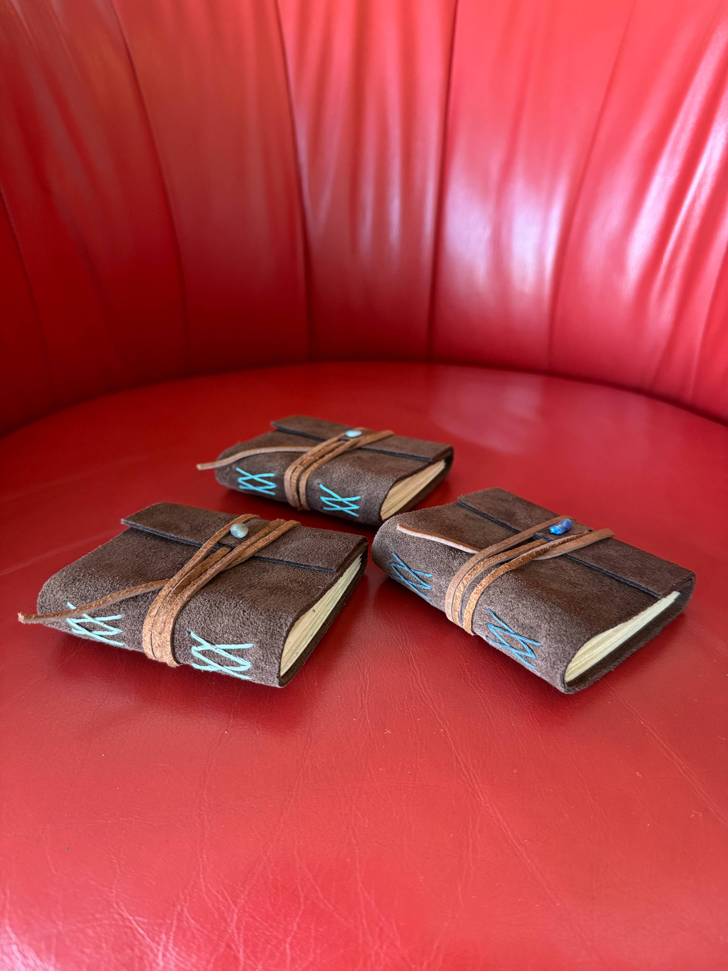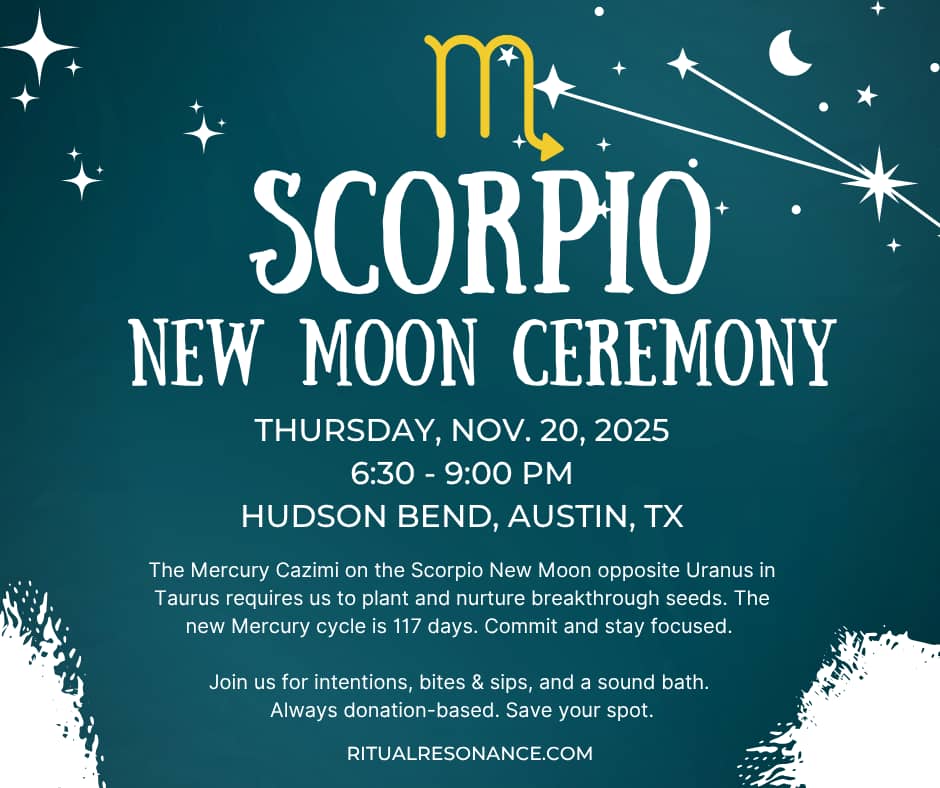 As readers you know that I've been obsessed with watercoloring lately and spend every moment learning techniques and bringing my plein air supplies wherever I go. What you may not know is that I've also been creating these mini journals out of suede, leather, beeswaxed hemp cord, watercolor or mixed media paper, and gemstones. It began when my current beautiful green grey journal was coming to its end and I couldn't find another to replace it. As someone who needs to work with my hands (I love when I know how to fix my own car stuff), I decided to make my own. I studied different book binding techniques and experimented with scrap suede, leather, and cloth in my boxes of crafting supplies. Mostly I've been gifting these to friends and have a few I'll sell at the December 20th Witches Market at the Brewtorium. This is what the Mercury's shadow leading up to the new cycle has felt like to me. Being obsessed with new creative ideas, investing heavily on experimenting with them, and taking action to see where they lead me. I think I now have a clue... Yes, of course I'm going to host a New Moon Ceremony on this auspicious and transformative lunation. Let's gather our intentions and our art supplies, and set the seeds of breakthroughs and innovations. I'll have our usual snacks and sips and we'll integrate it all with a sound bath. Always donation based Thursday, November 20, 2025, 6:30 - 9:00 p.m. | Hudson Bend, Austin, TX